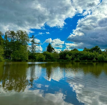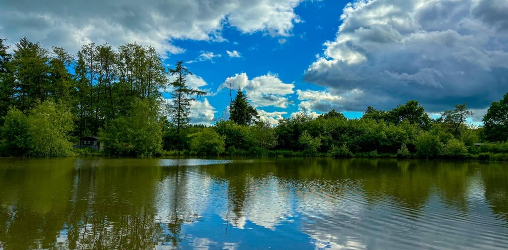 Offering woodland, lakeside or meadow camping (EHU, Campervan/Caravan pitches available on the meadow upon request) clean, functional basic toilet, shower and washing up facilities, 3 fishing pools, playground, swimming lake, communal charging points, quad bike hire & air rifle hire.